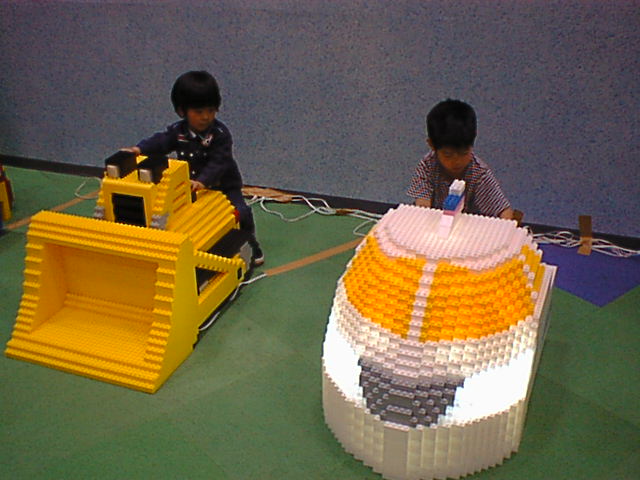 「ダイヤブロック」で作られたステージとメンバーの人形を製作し、